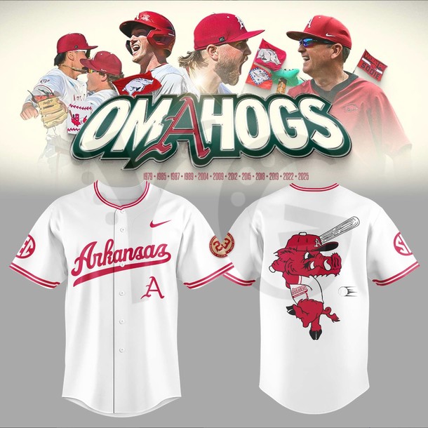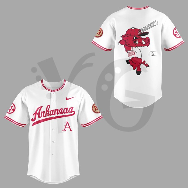 From the electric atmosphere of Baum Walker Stadium to the legendary fields of Omaha, the spirit of Arkansas baseball is rising! We meticulously crafted the Arkansas Razorbacks OMAHOGS Limited Edition Baseball Jersey to serve as a high fidelity tribute to the grit, talent, and resilience of the program. This release honors the players and fans who live for the postseason, utilizing a prestigious, high intensity palette of Cardinal Red, Victory White, and Anthracite Grey. It is a sophisticated blend of rugged athletic aesthetics and elite commemorative prestige. Whether you are leading the “Woo Pig Sooie” chant in the stands or repping the “Omahogs” ethos globally, this jersey is your official artifact of Arkansas pride.