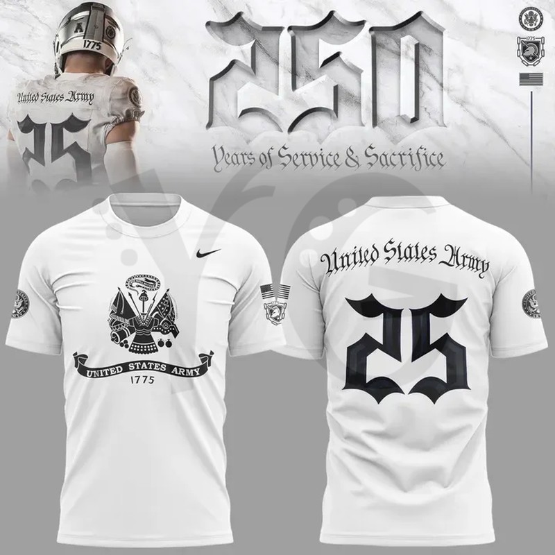 Historical Theme: The shirts feature design elements, crests, and motifs that blend the classic Black Knights imagery with historical markers or symbols related to the Army’s 250th milestone.