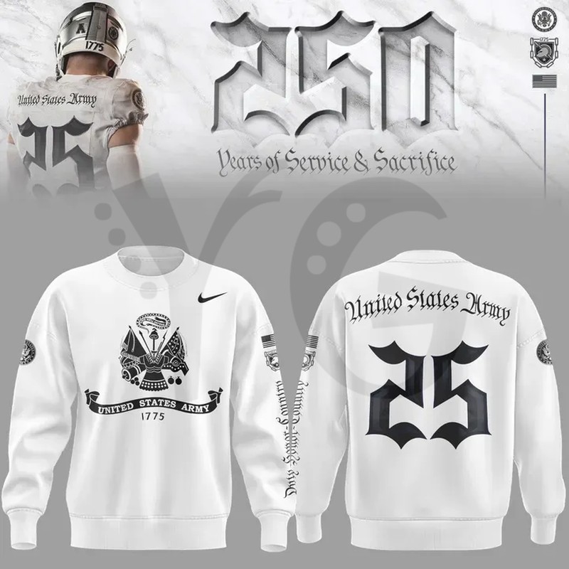 Honor the unwavering commitment and storied history of the United States Army and the cadets of West Point with this striking fan-made, Limited Edition Army Black Knights 250 Years of Service Shirt Collection! This collection is a unique tribute designed by fans to commemorate the monumental 250th Anniversary of the Army (established 1775). Show your support for the Black Knights and the profound legacy of those who serve!