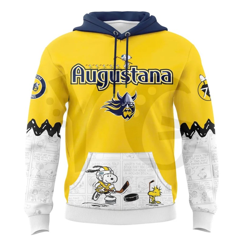 Skate with Snoopy! Get the fan-made, Augustana Vikings x Peanuts Special Edition Hoodie. Features Snoopy and the gang celebrating the Vikings. Exclusive college hockey crossover at YourGiftsy.com!