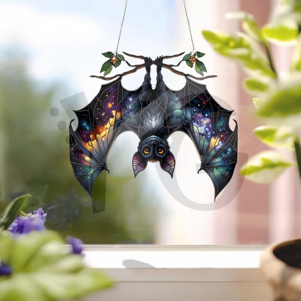 Bat Gothic Acrylic Window Hanging Decor Ornament: Stained Glass Galaxy