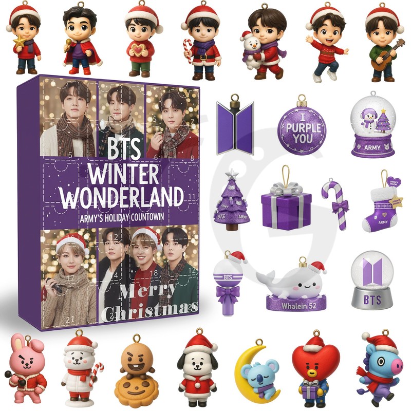 Let the countdown begin for the BTS Army! Get the fan-made BTS Winter Wonderland Christmas Advent Calendar. Features 24 mini acrylic ornaments. Limited stock only at YourGiftsy.com!