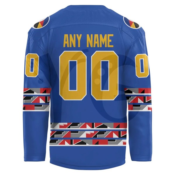 In Buffalo, we recognize that the game we love has deep roots in the traditions of the Indigenous peoples of this land. We designed the Native American Heritage Hockey Jersey to commemorate the Sabres’ 2026 heritage celebration at KeyBank Center. This design pays tribute to the Haudenosaunee (Iroquois) Confederacy, blending the Sabres’ Royal Blue and Gold with the sacred Purple and White of Wampum. Featuring a specialized crest that incorporates traditional patterns and the Hiawatha Belt symbols, this jersey is a symbol of respect for the “Creator’s Game” and the enduring spirit of the Six Nations in Western New York.