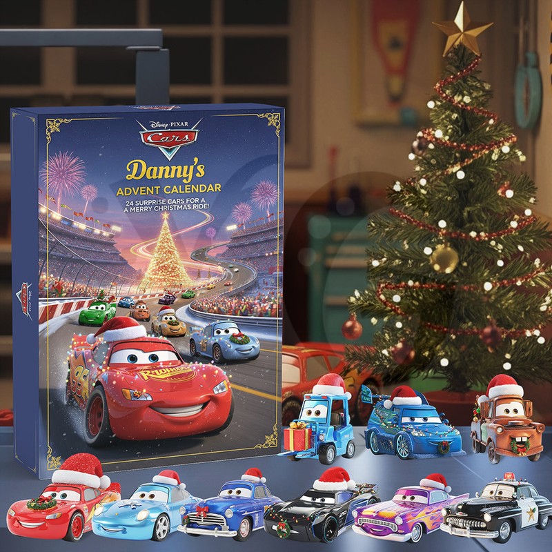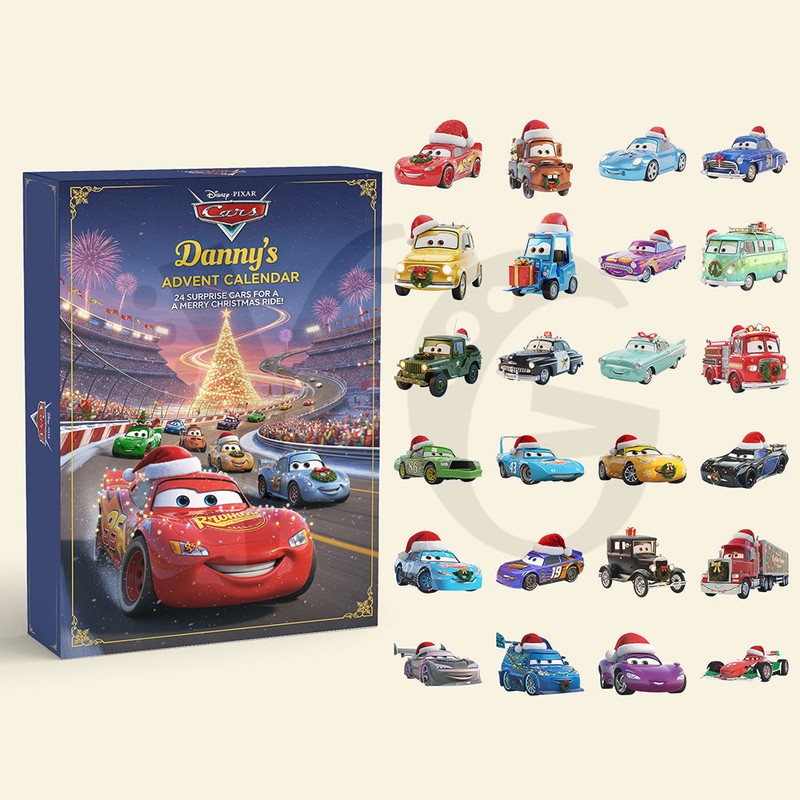 This thrilling Advent Calendar offers 24 days of daily, high-octane surprises. The best part? It’s Personalized! The packaging is often bright, featuring Lightning McQueen, Mater, and Cruz Ramirez ready for a festive Piston Cup. The main feature is the customizable space, allowing you to prominently display the child’s name, making them feel like a true member of the racing crew.