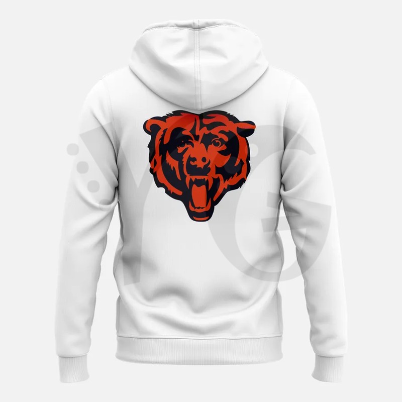 How should I care for my Bears White Logo hoodie? To keep the white logo as bright as the first snow at Soldier Field, wash in cold water on a gentle cycle. Tumble dry on low heat or hang dry to preserve the technical “All-Over” print.