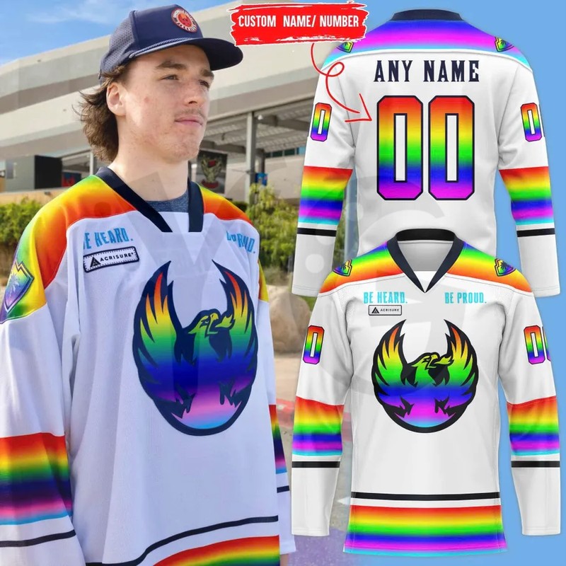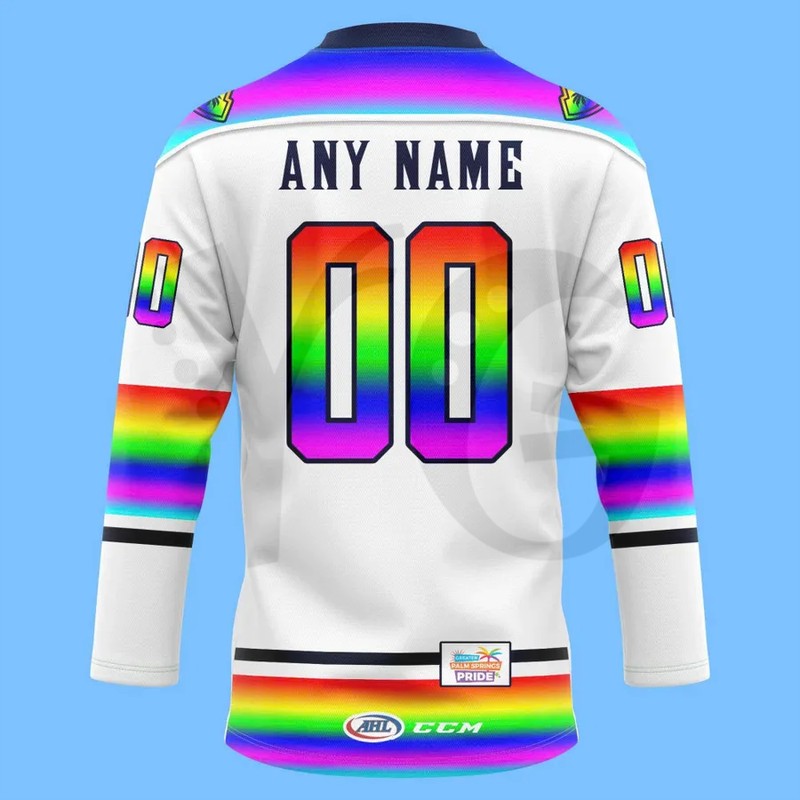 Is this an official AHL or Coachella Valley Firebirds product? No. This is a premium fan-made commemorative jersey. It is a unique artistic tribute designed for fans to celebrate Pride Night, offering a specialized look not available in the team’s standard retail shop.