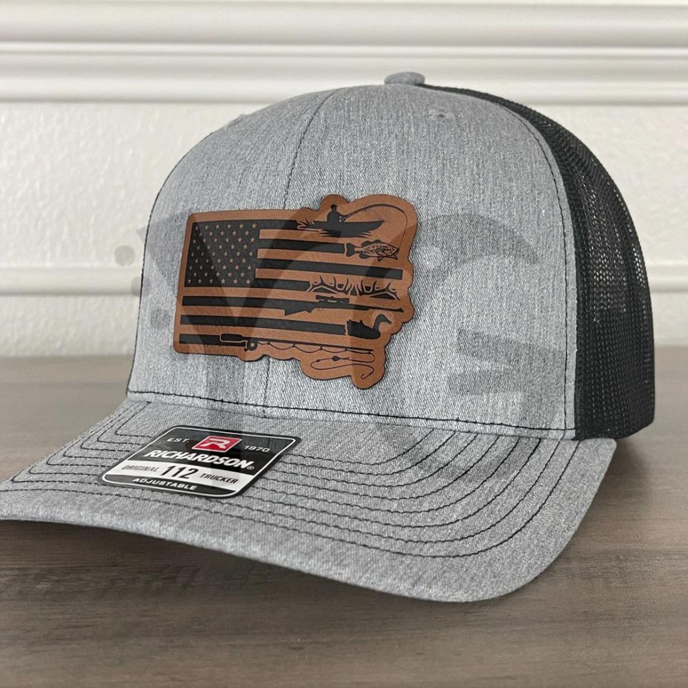 Duck Hunting And Fishing American Flag Leather Patch Hat