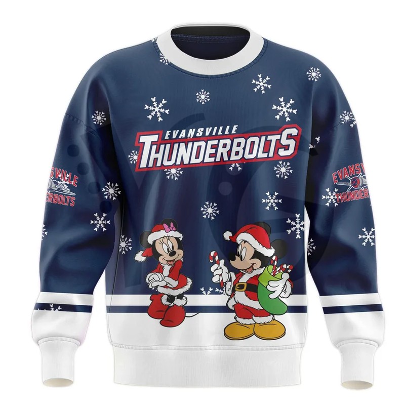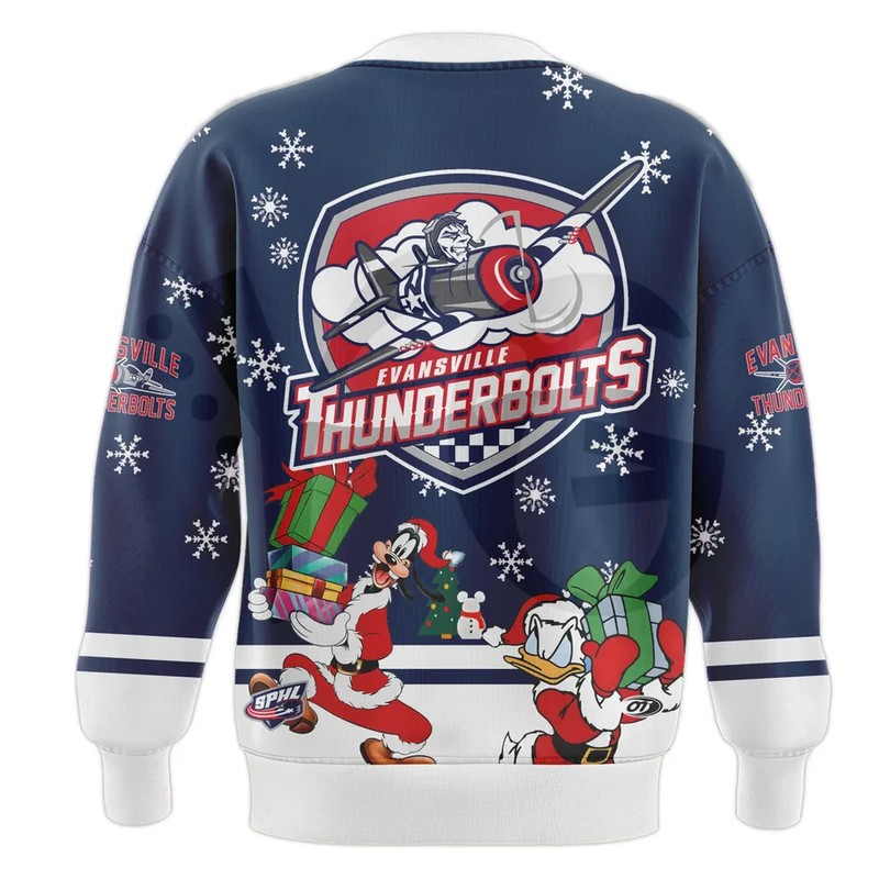 Jingle all the way! Get the fan-made, customizable Evansville Thunderbolts x Mickey Christmas Collection! Choose the holiday sweater or hockey jersey featuring Mickey & Friends. Exclusive fan apparel at YourGiftsy.com!