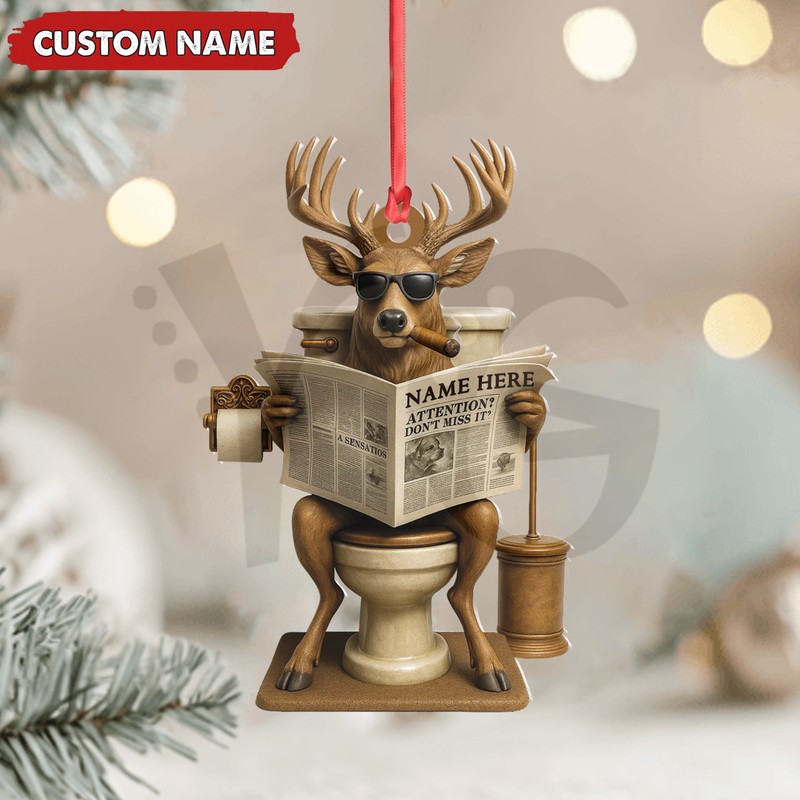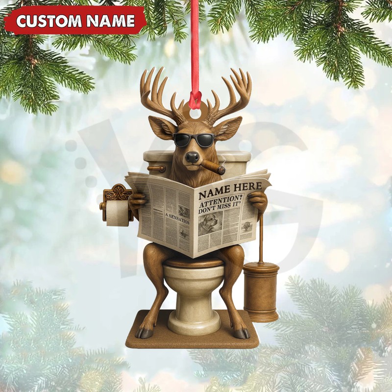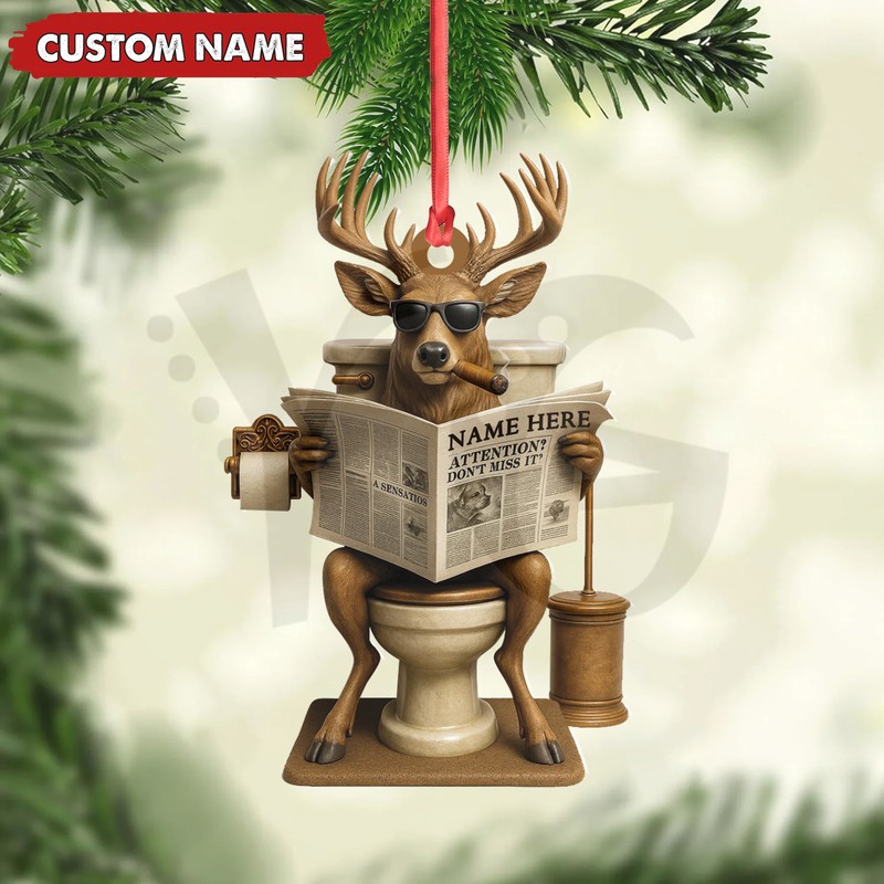 Need a laugh? Get the fan-made Hilarious Buck on Toilet Christmas Acrylic Ornament. The perfect gag gift or quirky décor for hunters and humor lovers. Limited stock at YourGiftsy.com!