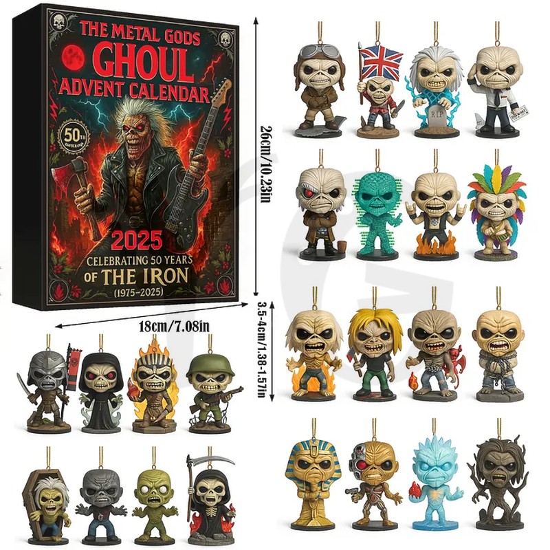 - 24 Days of Exclusive Merchandise: Behind each numbered door, the recipient will find a unique, high-quality, Maiden-themed item. These surprises often include miniature Eddie figures (representing different albums), iconic album art pins, themed keychains, patches, ornaments, or unique guitar picks.