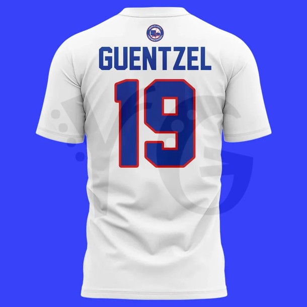 Vanguard Bold Typography: The back features the name GUENTZEL and his iconic number 20 in a unique Steel Block font with shimmering gold outlines, ensuring the 2026 legacy narrative remains bold and legible.