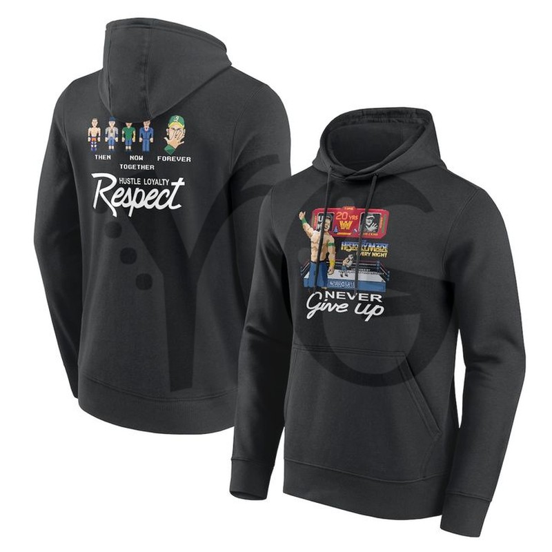 Pullover Hoodie: Features pixelated graphics of Cena and friends, and the “Never Give Up” slogan.