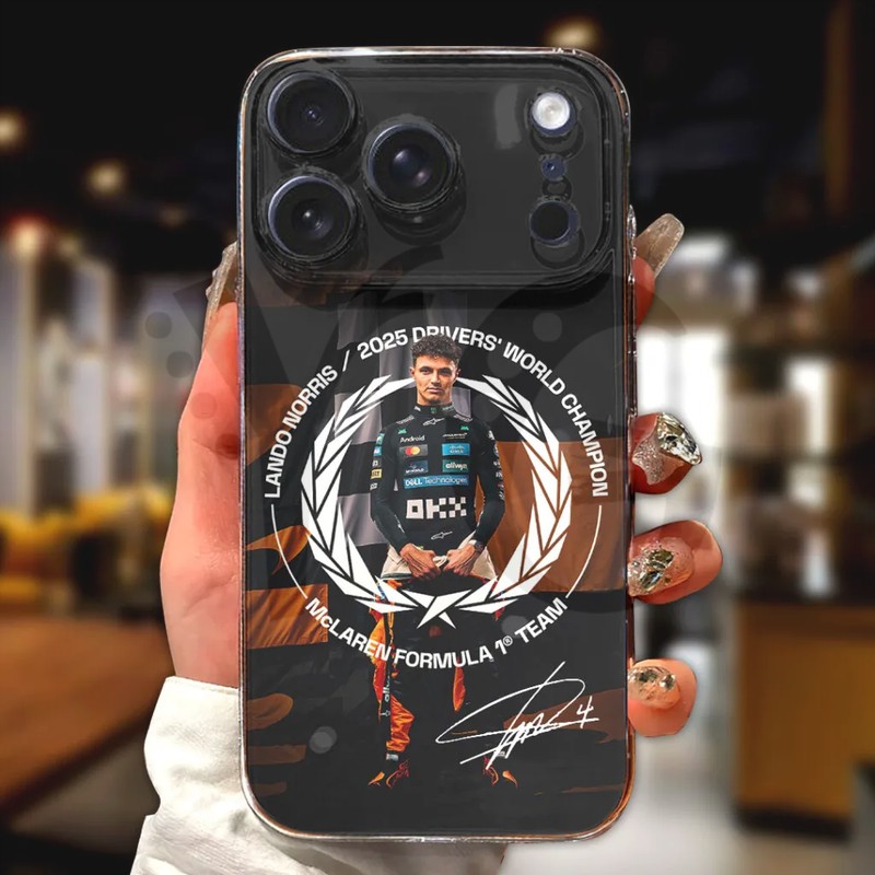 By choosing this fan-made phone case, you get a unique, high-quality, and visually powerful piece of memorabilia that anticipates a historic victory for Lando Norris and McLaren.