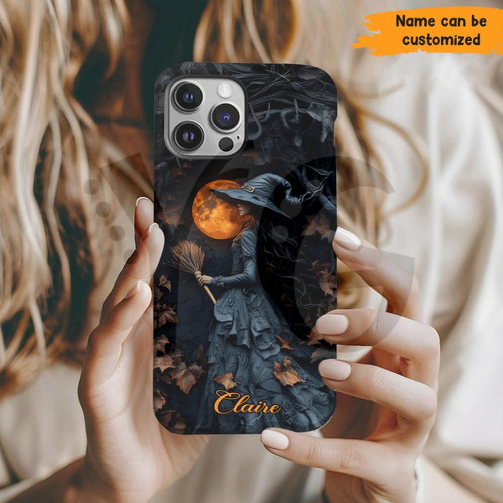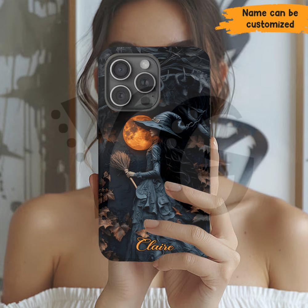 Step into the veil between worlds. This is the Midnight Witch Halloween Phone Case—a stunning fusion of Gothic folklore and modern personalized style. Forget cutesy Halloween decor; this design captures the elegance and mystery of the season. Featuring a graceful witch figure holding her broom, silhouetted against a breathtaking burnt orange full moon, this case is a statement piece for those who embrace the darker side of beauty.