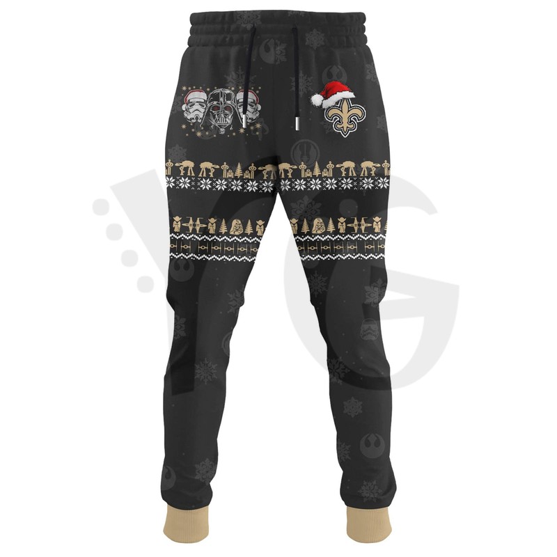 This premium-quality hoodie is perfect for staying warm at the Caesars Superdome, during game day in the Big Easy, or while binge-watching your favorite holiday specials and Star Wars sagas. It features a bold, creative graphic design combining the Saints’ Fleur-de-Lis logo and colors (Black, Gold, and White) with festive Star Wars elements—imagine the Millennium Falcon flying over the French Quarter or the Saints logo integrated into a Jedi starfighter’s design! As a product made by fans for fans, it offers a deeply personal, stylish, and highly unique way to showcase your dual fandom.