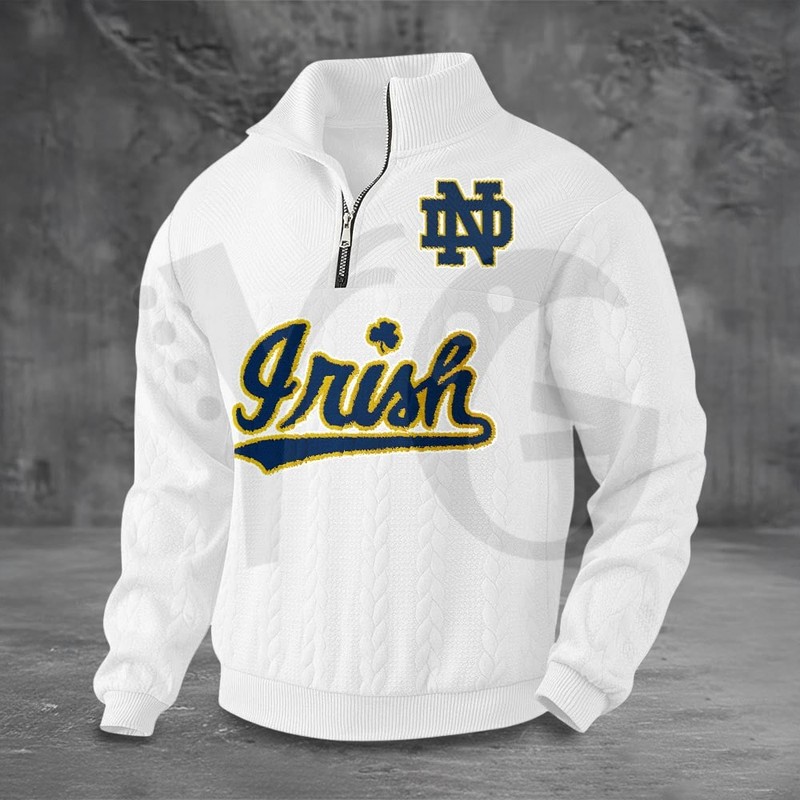 Embrace the hallowed traditions and stay warm with this exceptionally soft and stylish Notre Dame Fighting Irish Half-Zip Sweater! Designed for the dedicated student, alumnus, or fan of the legendary Fighting Irish, this premium piece is the perfect blend of warmth, comfort, and bold Notre Dame spirit. Whether you’re walking past the Golden Dome, cheering in the stands, or just seeking superior casual wear, this half-zip sweater lets you showcase your ND loyalty in sophisticated style.
