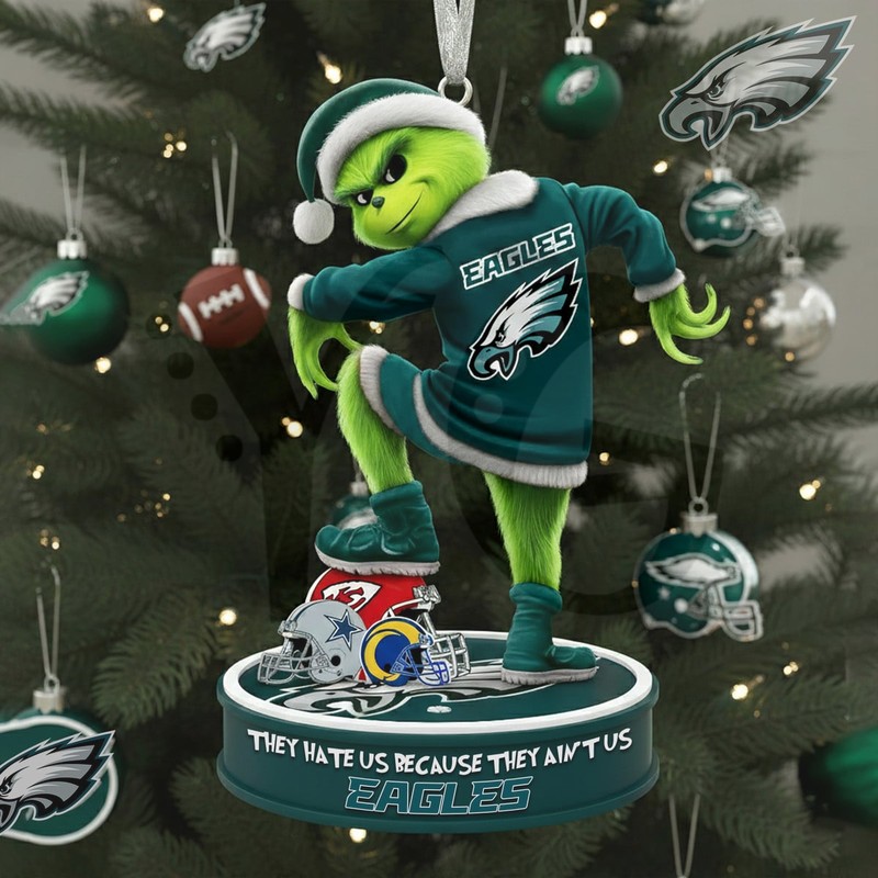 Fly, Eagles, Fly… and be grumpy! Get the Philadelphia Eagles x Grinch They Hate Us Ornament. A unique mini acrylic collectible for the dedicated Eagles fan. Limited stock only at YourGiftsy.com!