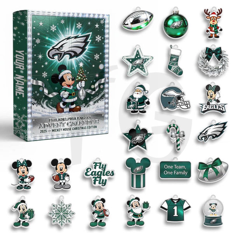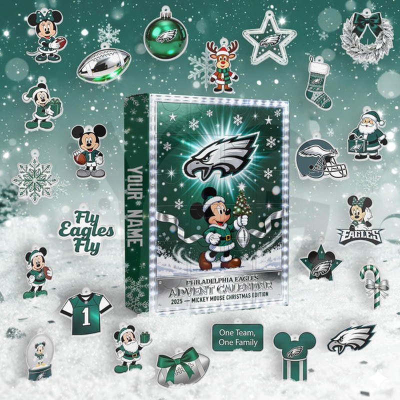Fly Eagles Fly! The Philadelphia Eagles x Mickey Personalized Advent Calendar delivers 24 days of exclusive Green, Silver, and Disney-themed memorabilia. Count down the holidays with a unique, personalized Eagles tribute!