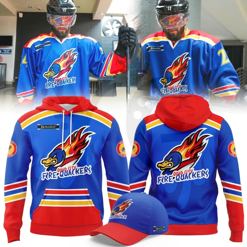 The Quad City Storm Fire Quackers Hoodie is a high-octane tribute to the grit of the Mississippi River and the heroes who protect it. This fan-made commemorative piece blends the “First Responder” identity with the Storm’s legendary “Fire Quacker” alternate persona, creating a look that’s as hot as a five-alarm fire: