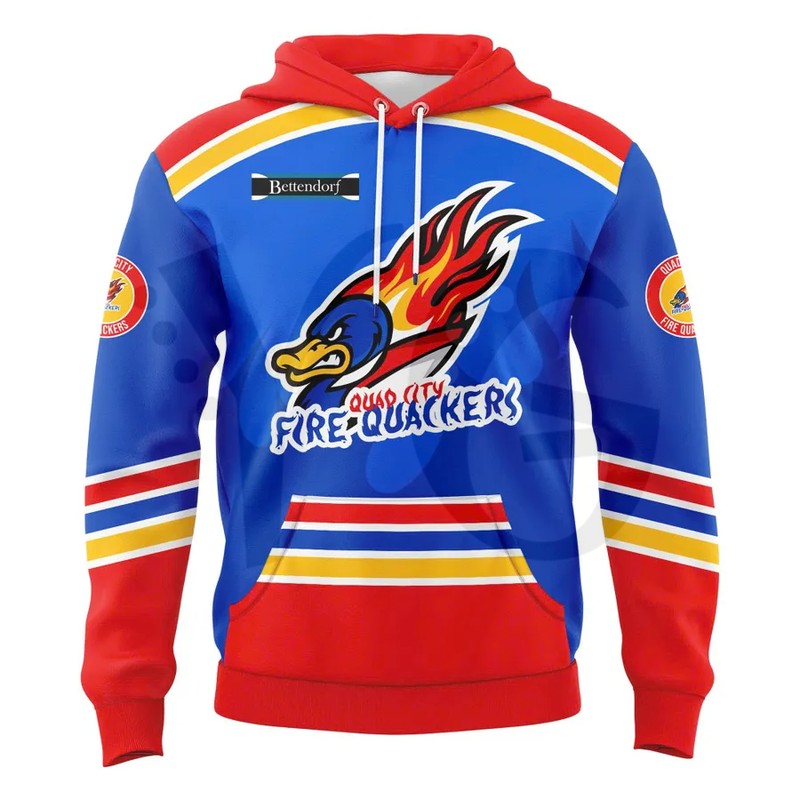 Is this an official Quad City Storm product? No. This is a premium fan-made commemorative hoodie. It is a unique artistic tribute designed for fans who love the “Fire Quacker” theme, offering a specialized look not available in the team’s standard retail shop.