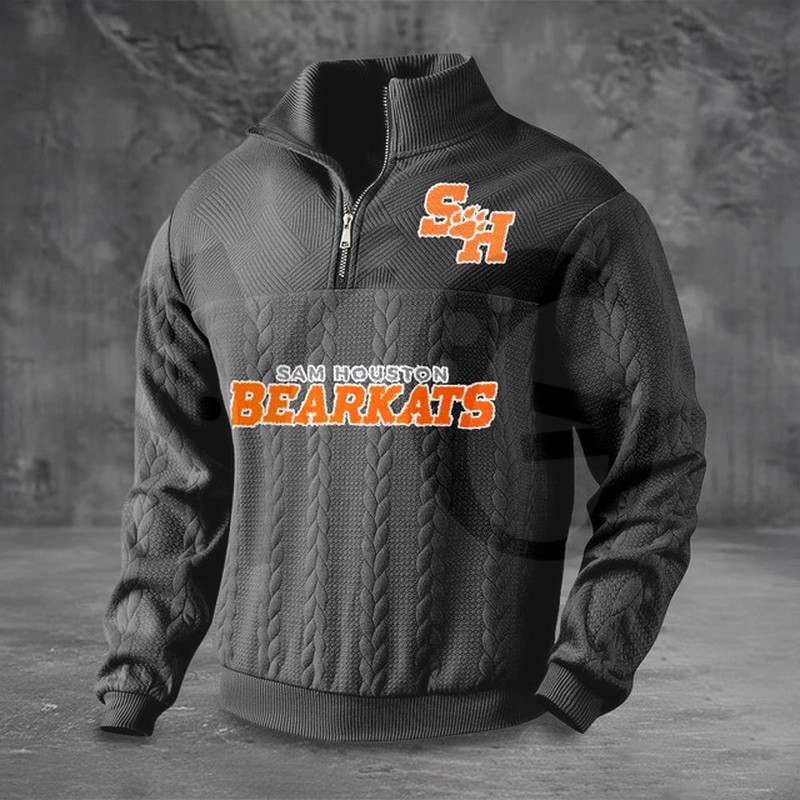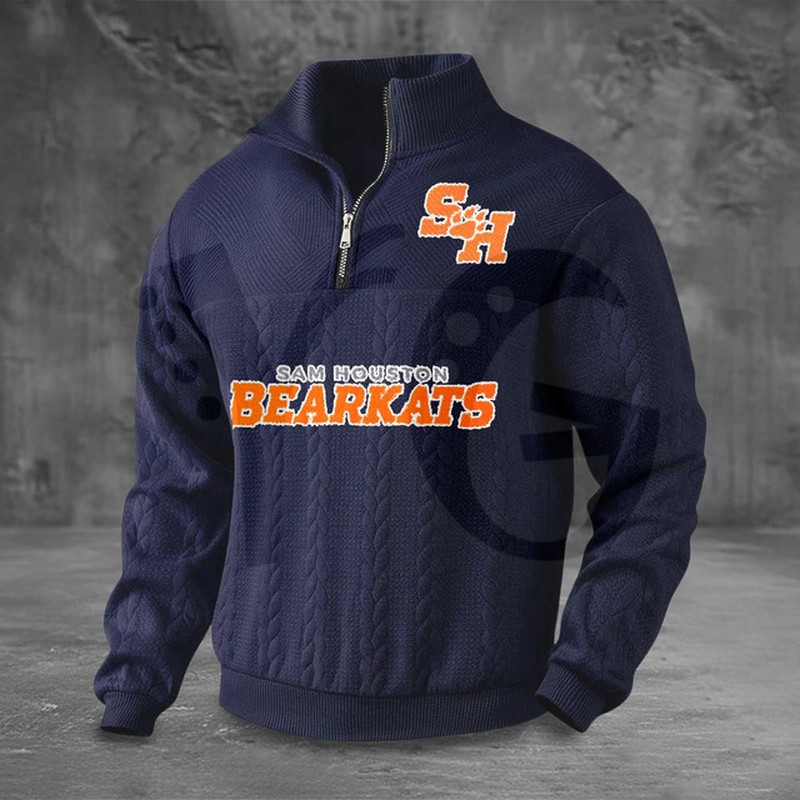 Embrace the fierce spirit of the Bearkats and stay warm with this exceptionally soft and stylish Sam Houston Half-Zip Sweater! Designed for the dedicated student, alumnus, or fan of Sam Houston State University (SHSU), this premium piece is the perfect blend of warmth, comfort, and bold Bearkats spirit. Whether you’re navigating the Huntsville campus, cheering at Bowers Stadium, or just seeking superior casual wear, this half-zip sweater lets you showcase your SHSU loyalty in sophisticated style.