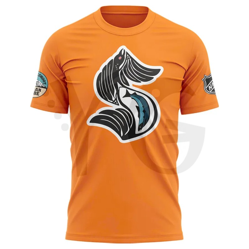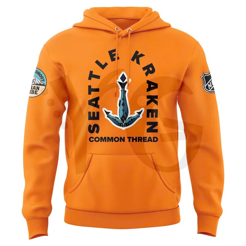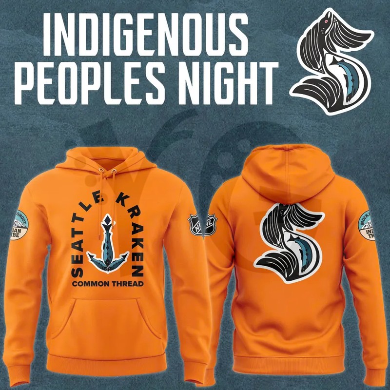 Honor the heritage! Get the fan-made Seattle Kraken Indigenous Peoples Night Collection. Features the anchor/kraken logo with tribal/Pacific Northwest motifs on an orange base. Exclusive fan apparel at YourGiftsy.com!