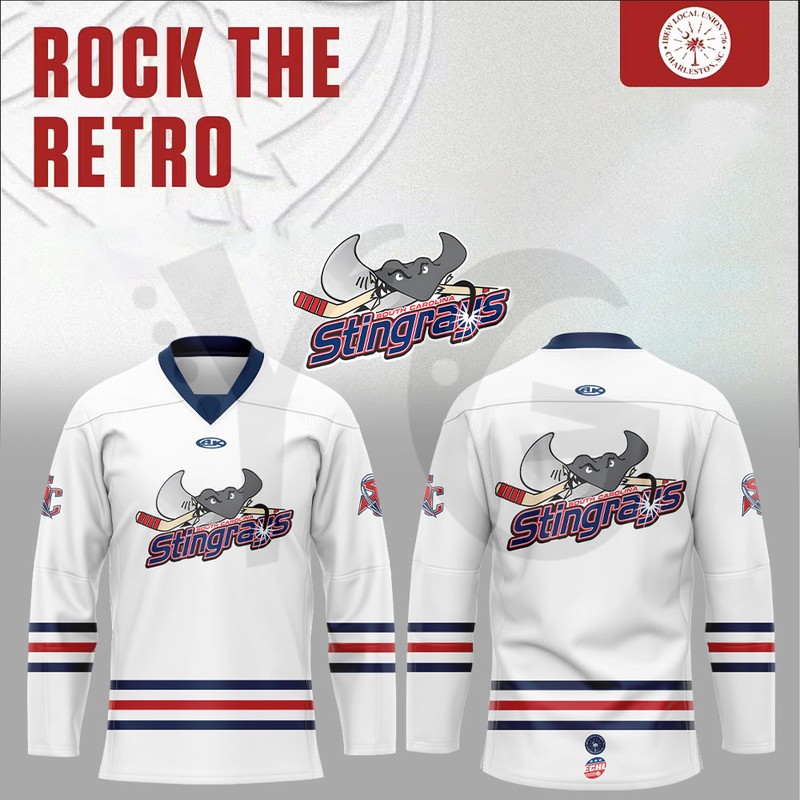 The clock is winding back at the North Charleston Coliseum! Celebrate over three decades of Lowcountry hockey history with the fan-made South Carolina Stingrays “Rock the Retro” Special Hockey Jersey.