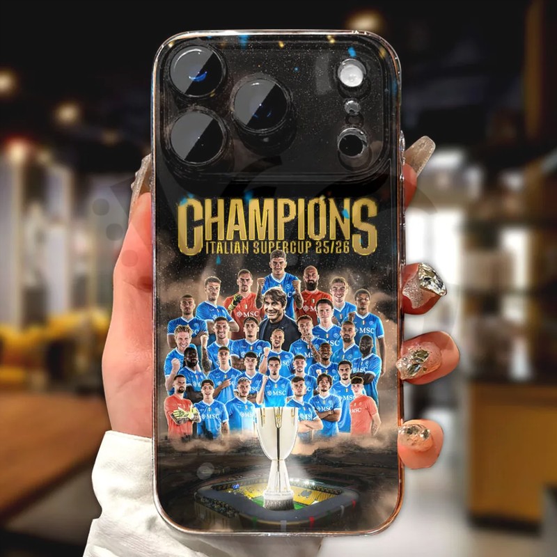 The trophy is coming back to Naples! Celebrate a historic night in Riyadh with the fan-made SSC Napoli 2025 Italian Super Cup Champions Phone Case.