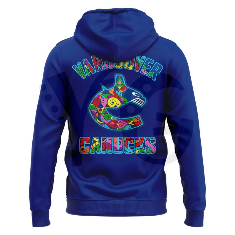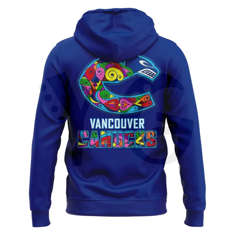 Is this an official NHL or Vancouver Canucks product? No. This is a premium fan-made commemorative hoodie. It is a unique artistic tribute designed for fans to celebrate Pride Night, offering a specialized look not available in the team’s standard retail shop.
